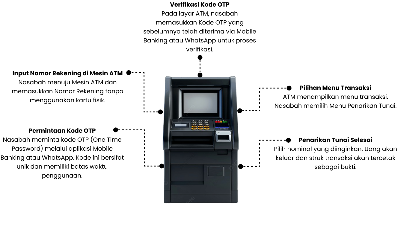 ATM Cardless adalah layanan tarik tunai yang dikembangkan perbankan/BPR yang memadukan kecanggihan electronic banking (SMS Banking, Mobile Banking, WhatsApp, Line dll) dengan mesin ATM.